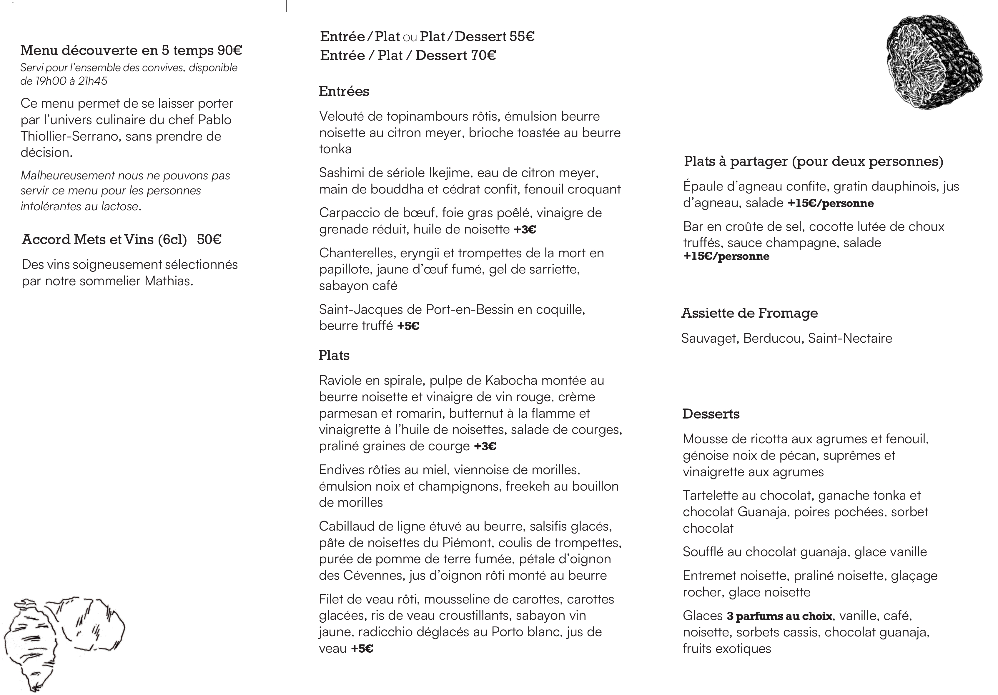 Notre chef de cuisine, Pablo Thiollier-Serrano, dirige une cuisine ou la saisonnalité et le respect pour les produits est primordial.